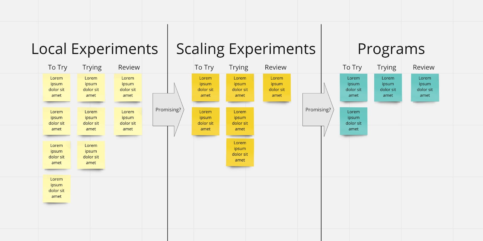 When you’ve converged on an experiment, move it to Committed. You’ll start this soon. Of course, as with any “work”, you should limit the number of committed items. Commit at the last responsible moment.
