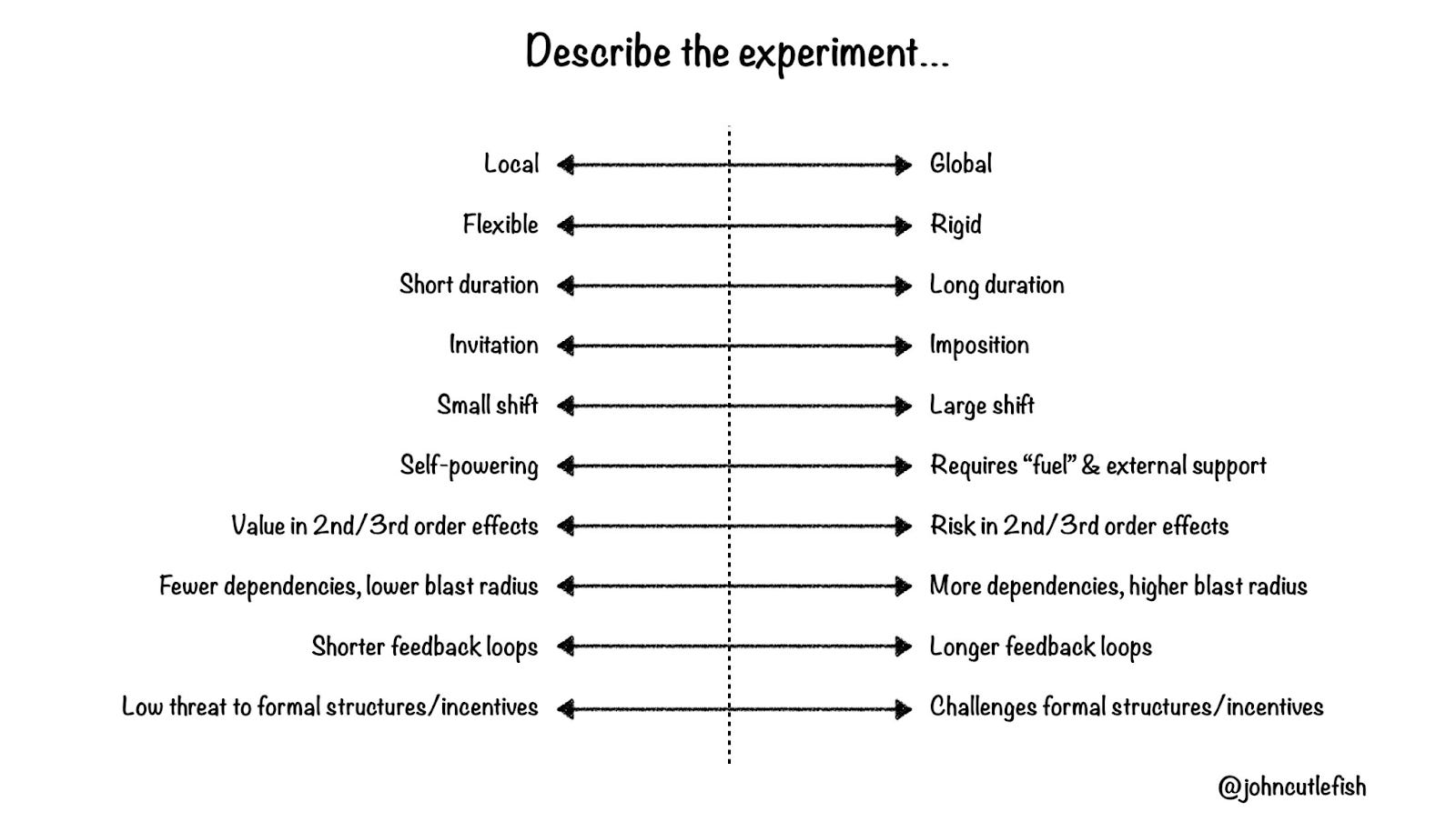 Here’s a handy tool for thinking about experiments. It doesn’t mean that items more to the right are “bad”, rather that they need to be thought through a bit more carefully: