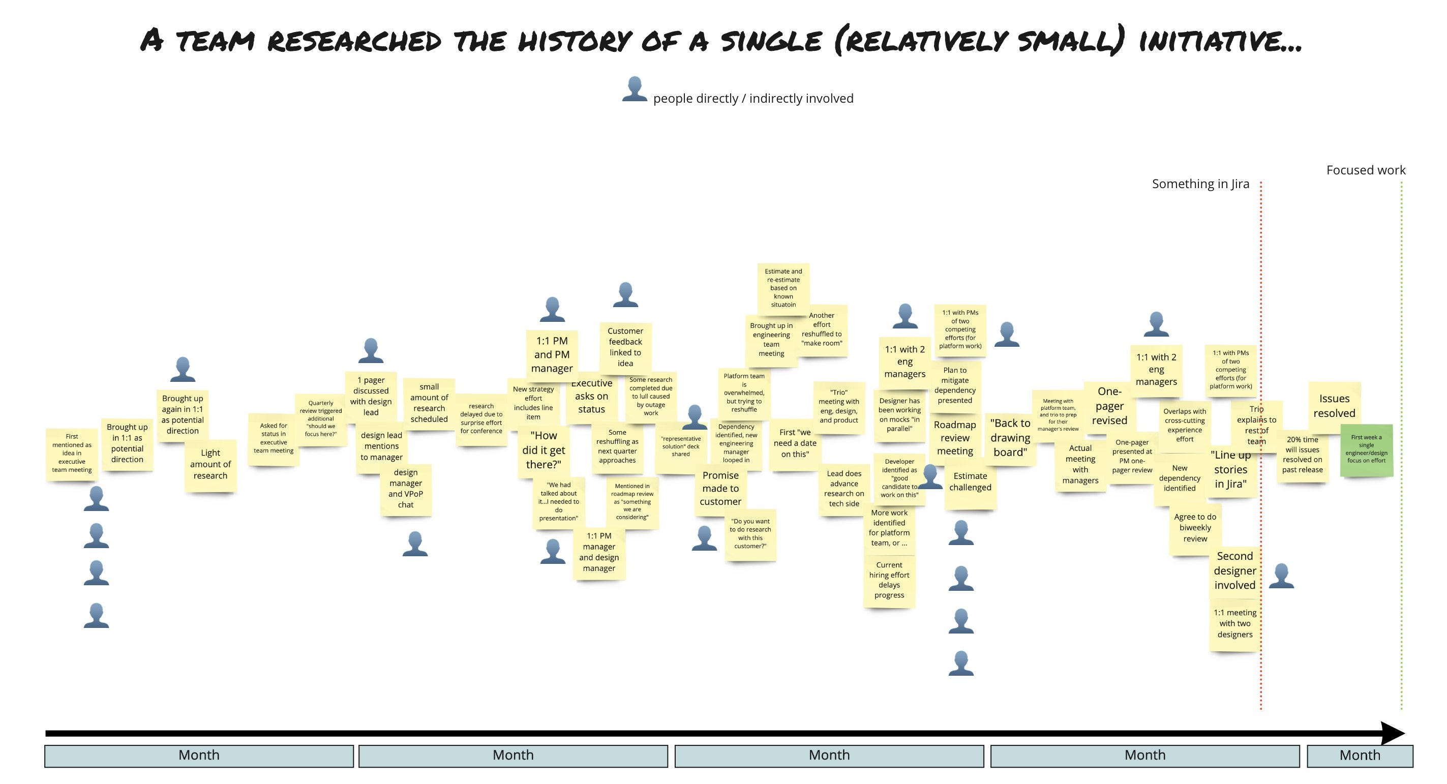 A team researched the history of a single (relatively small initiative).