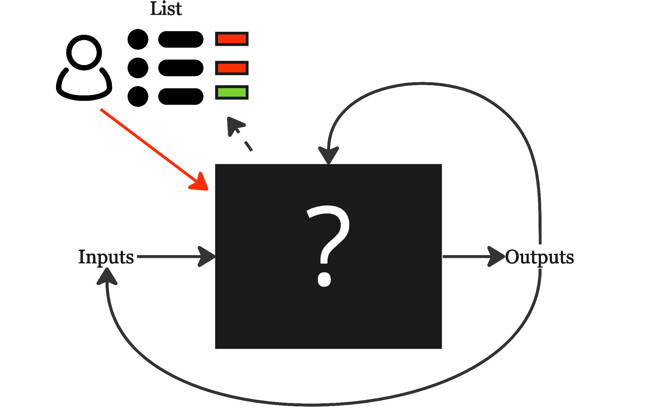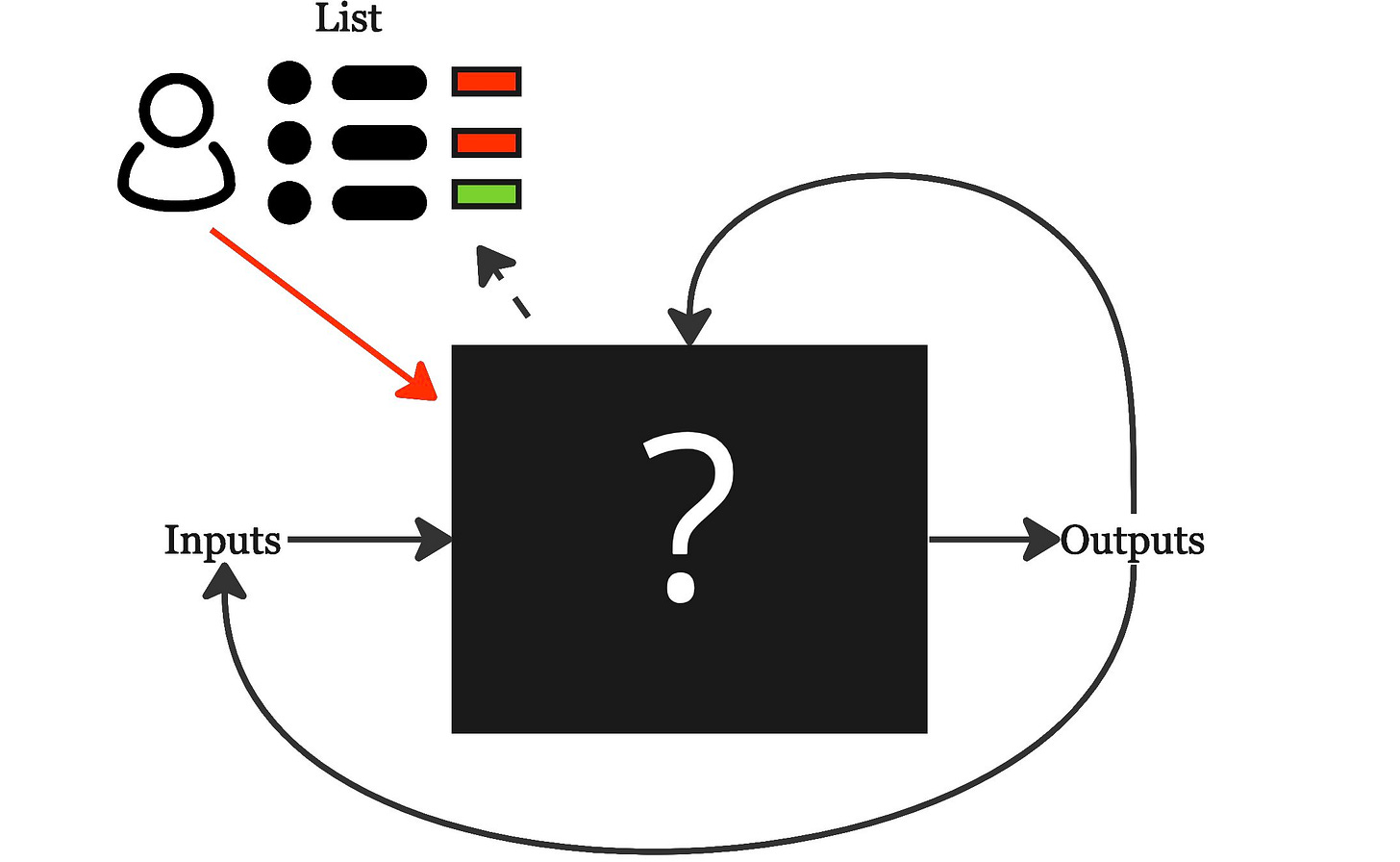 There’s no visibility into what’s happening. But it is not that simple (of course). The outputs are inputs into the black box. And the outputs input into the inputs.