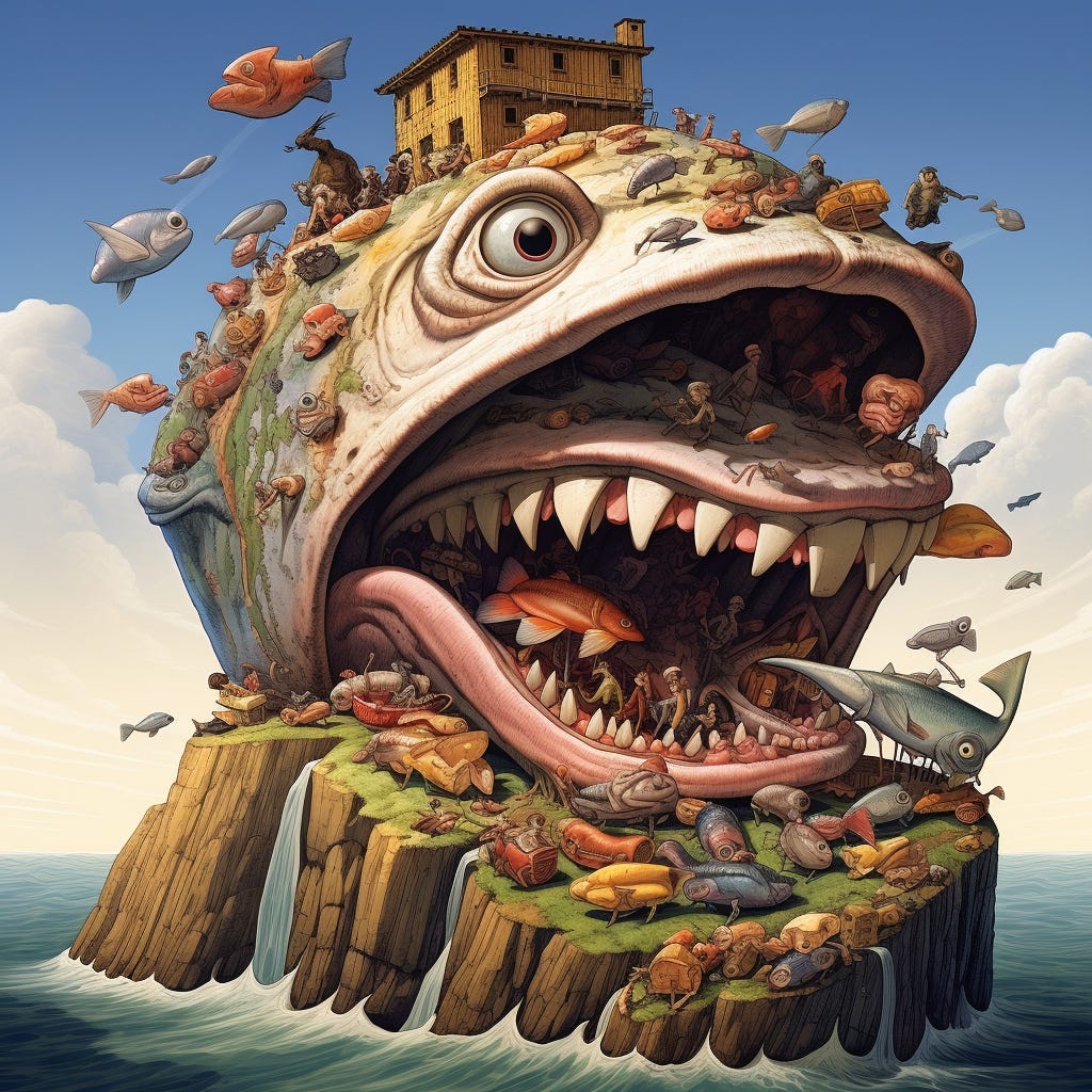 Next, we have a variation/reversal of the survival situation—gluttony, not survival.