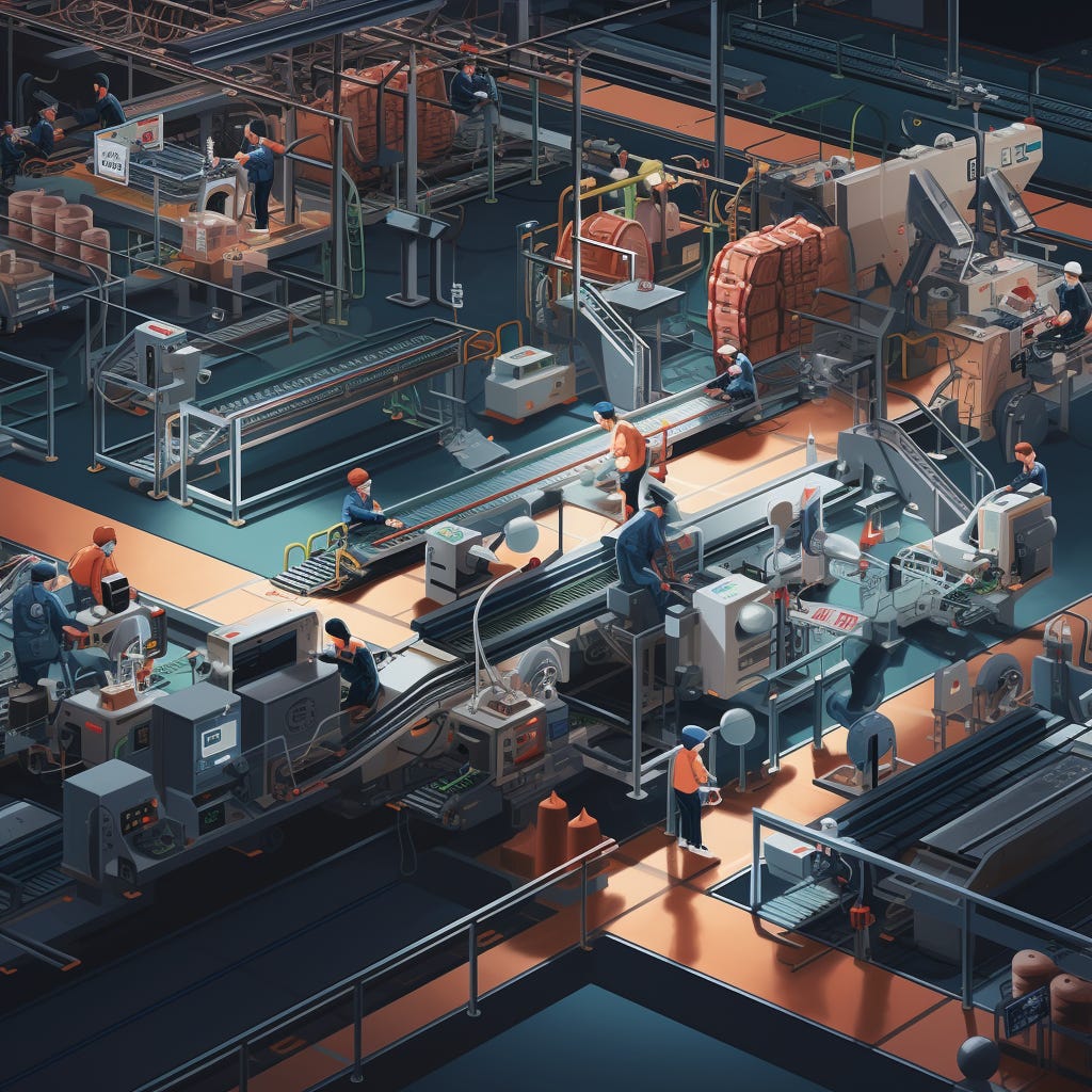 Manufacturing. Create a prototype, then manufacture. Check the finished product for defects. Handoff work for distribution.