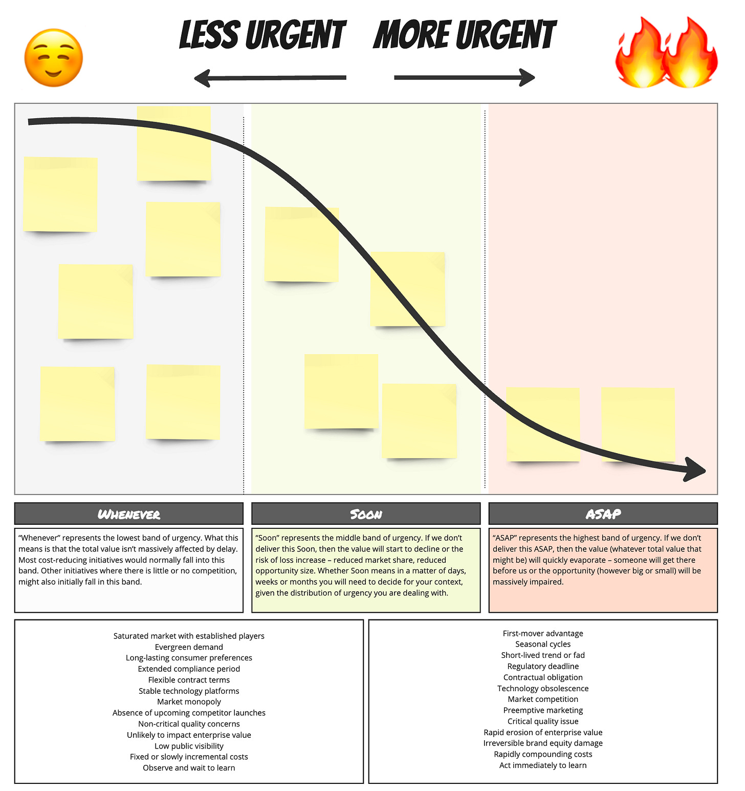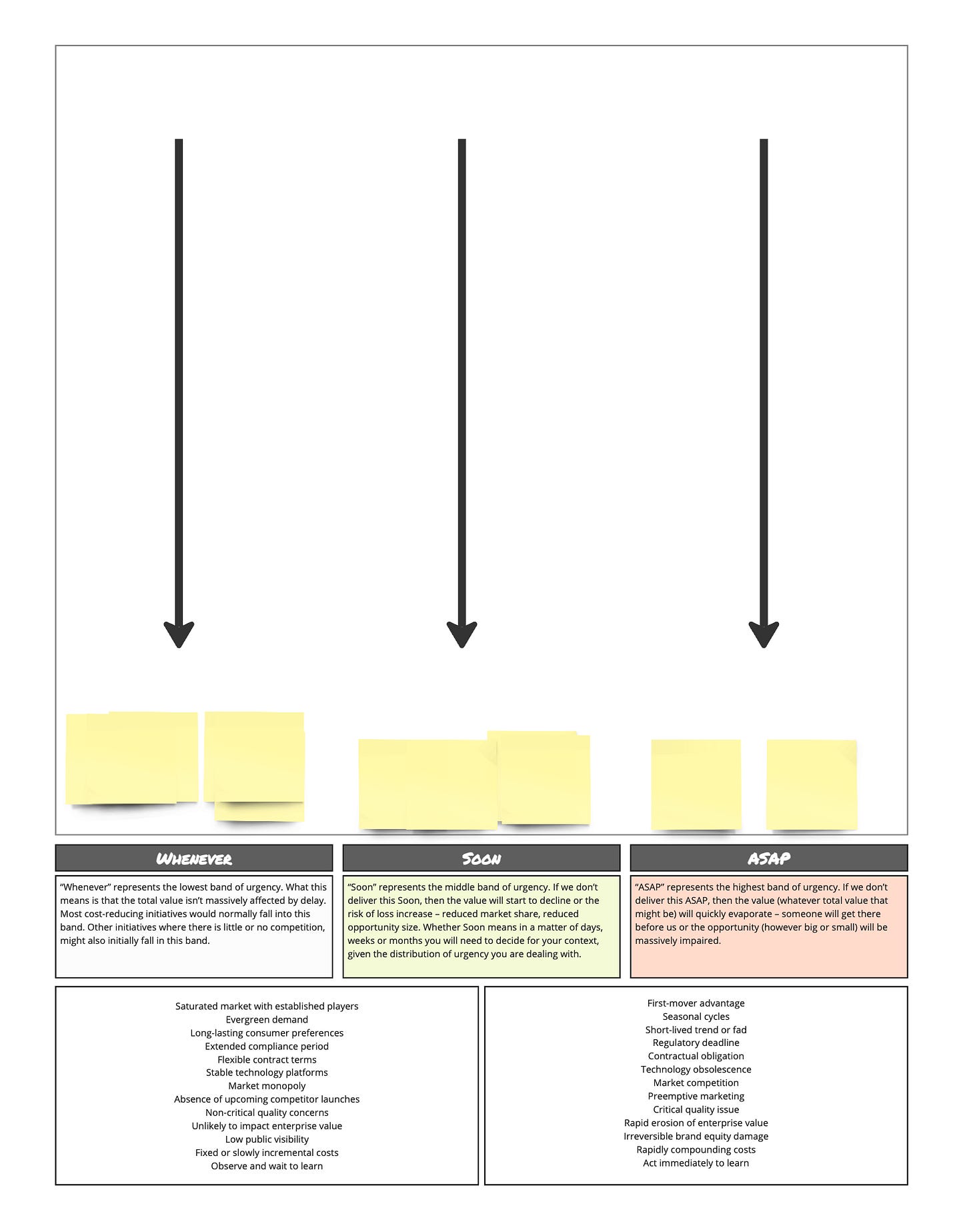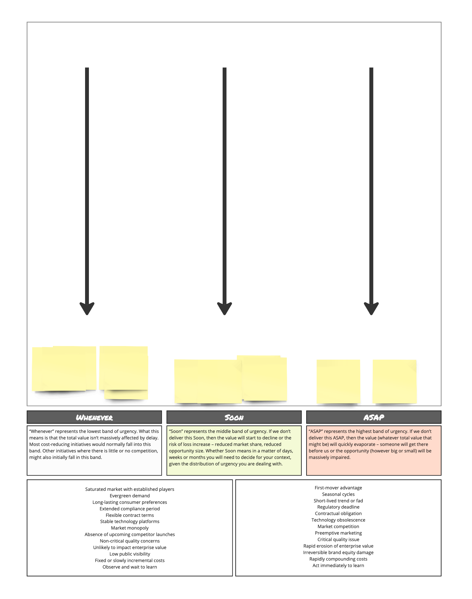 So what happened behind the scenes? In the first two exercises, we discovered the opportunity cost (or cost of delay) of the opportunity. The urgency and value decoupling is a mind game, but it works. In the final step, we layered in duration to arrive at a weight cost of delay (CoD/duration), which is a useful tool for sequencing.