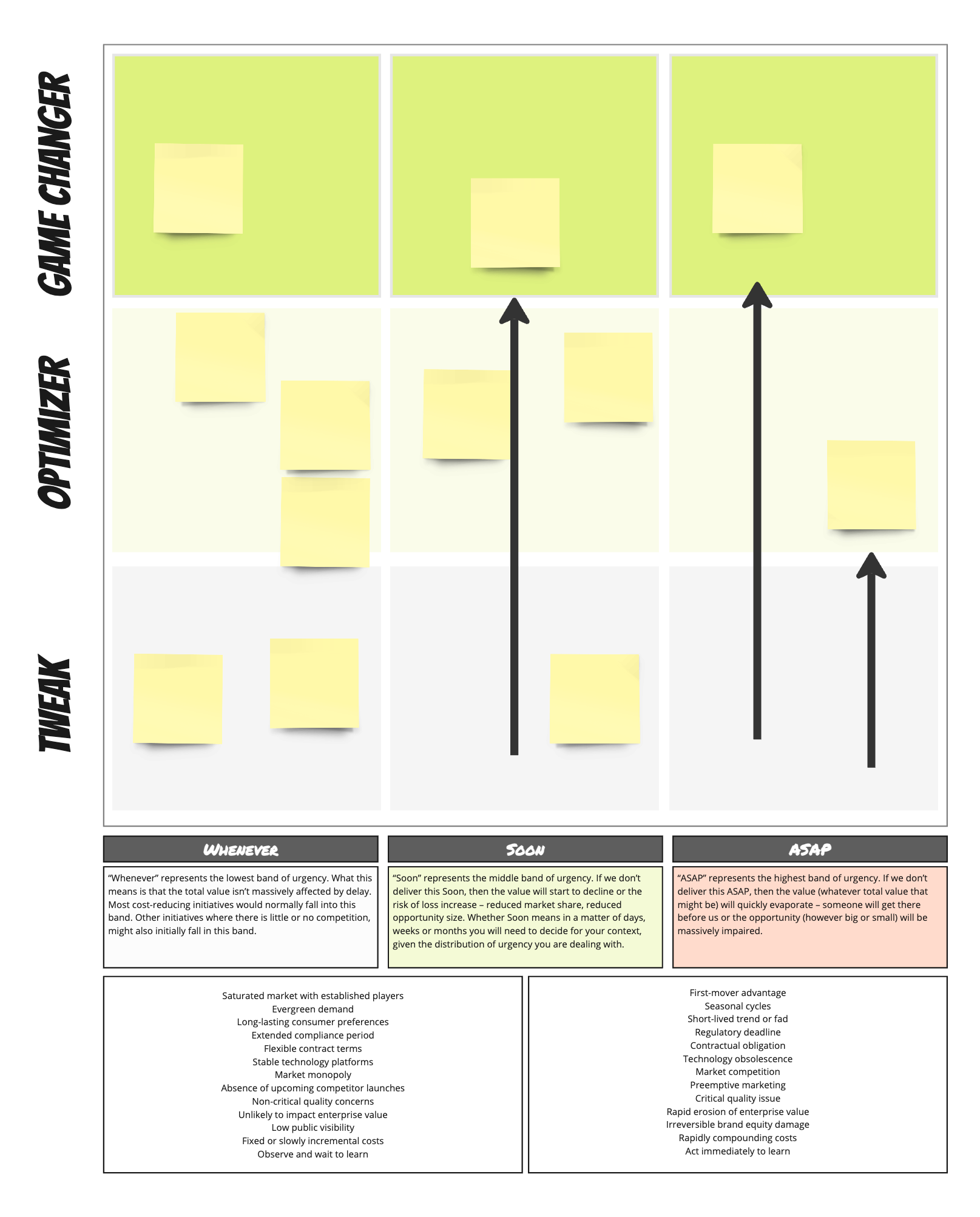 This is where things get interesting. The only move they have at their disposal is the VERTICAL movement. They can't shift urgency. To help a team, I label the Y axis with something like Game Change, Optimizer, and Tweak.