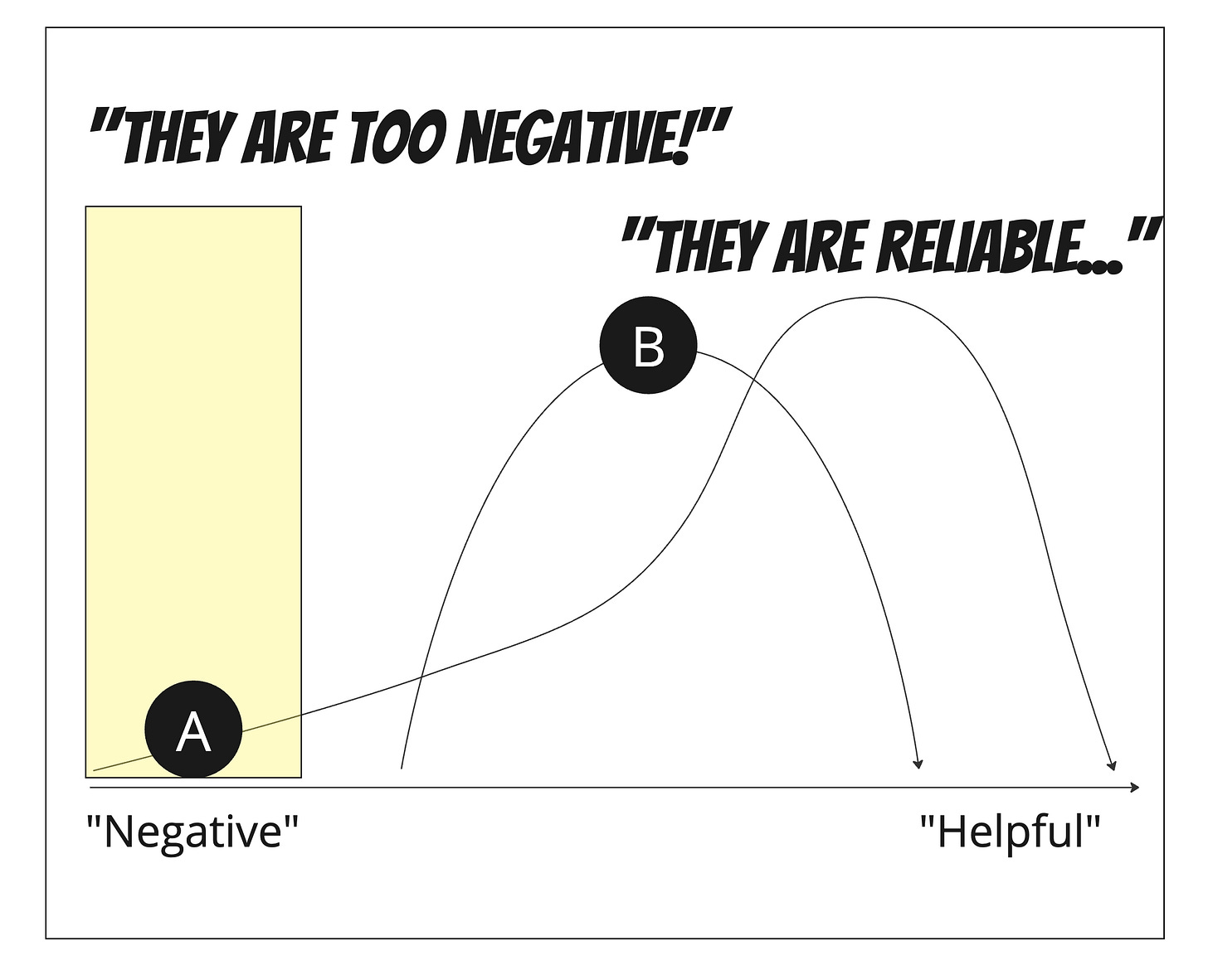 There are many situations as a change agent where the "upside" of a certain interaction is minimal. Still, the potential downsides—the chance of errors—are high (especially when compounded across many interactions). A great example here is speaking to senior executives. There are chances that you will magically make a good impression and move a problem forward, but they are low. It happens, but it is very, very rare. The chances that you will slip into a hornet's nest are high. The chances that your interaction will be "interesting" and you'll get the treatment most people get when bringing perspectives is higher than both, but it doesn't advance your mission. Plus, since they are likely good at obscuring their true feelings about the exchange, you probably will not know.