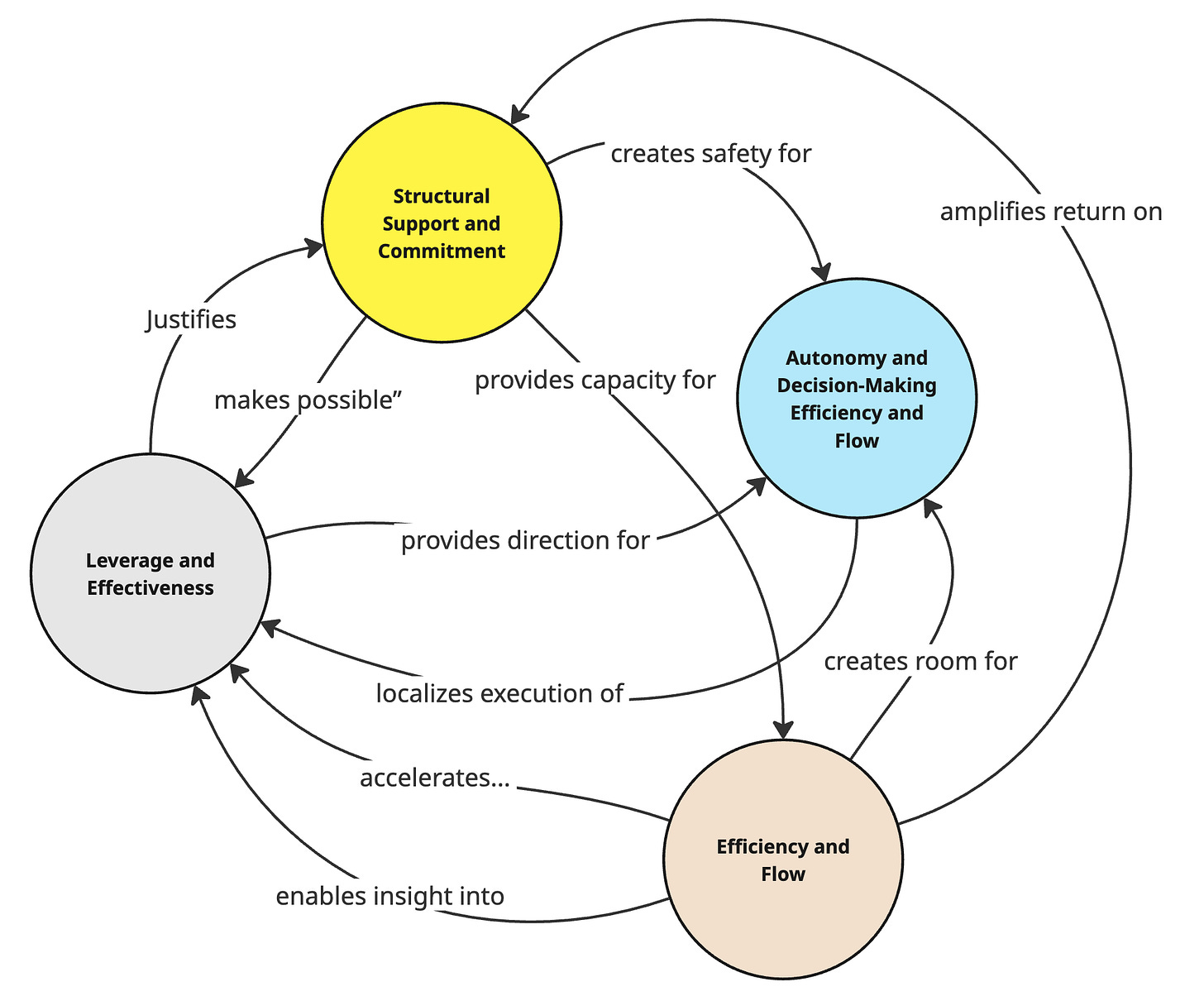 Efficiency → Autonomy → Leverage → Support