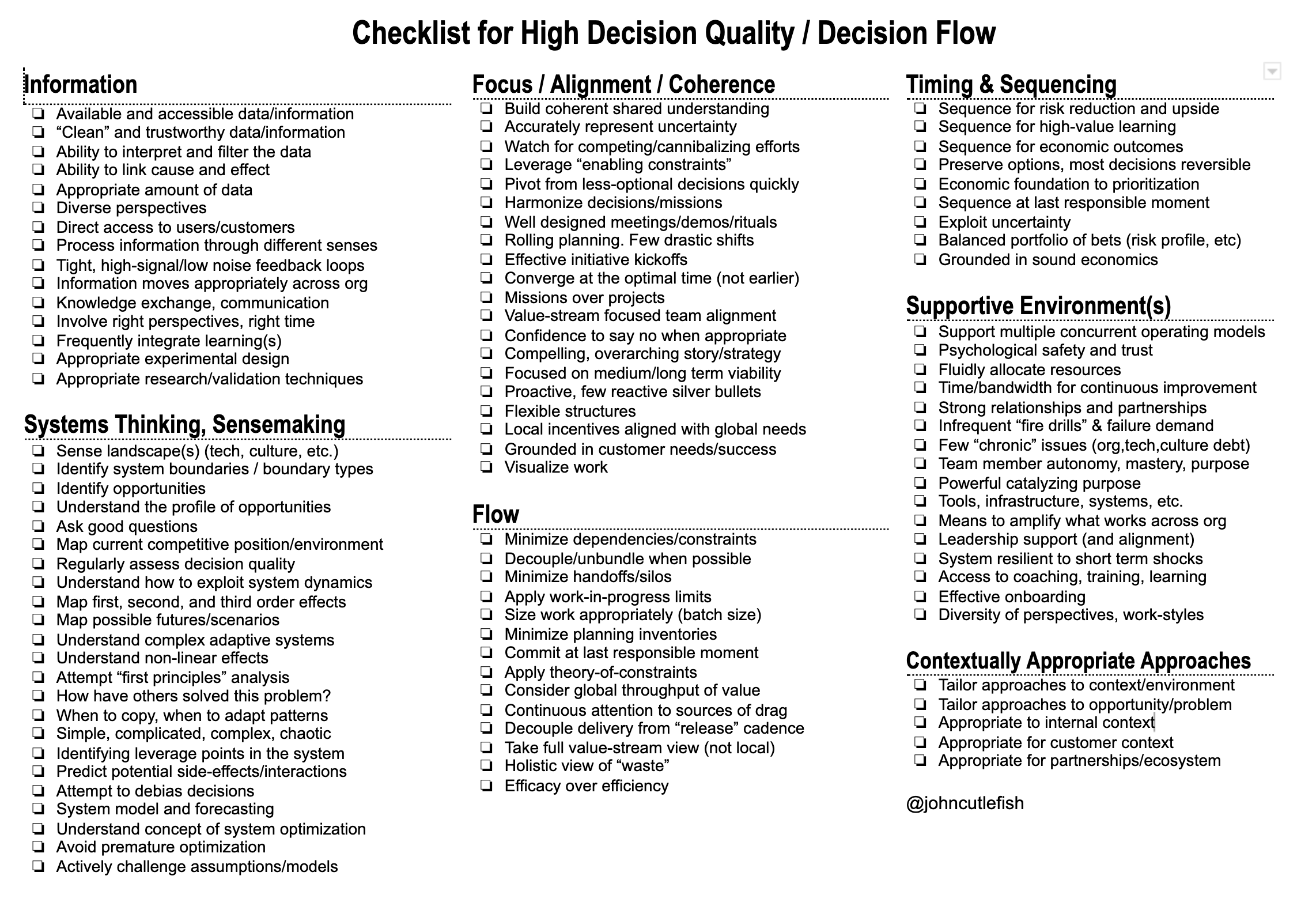 A quick checklist for high decision quality and decision flow. When looking at what Company X does, ask how it supports these things: