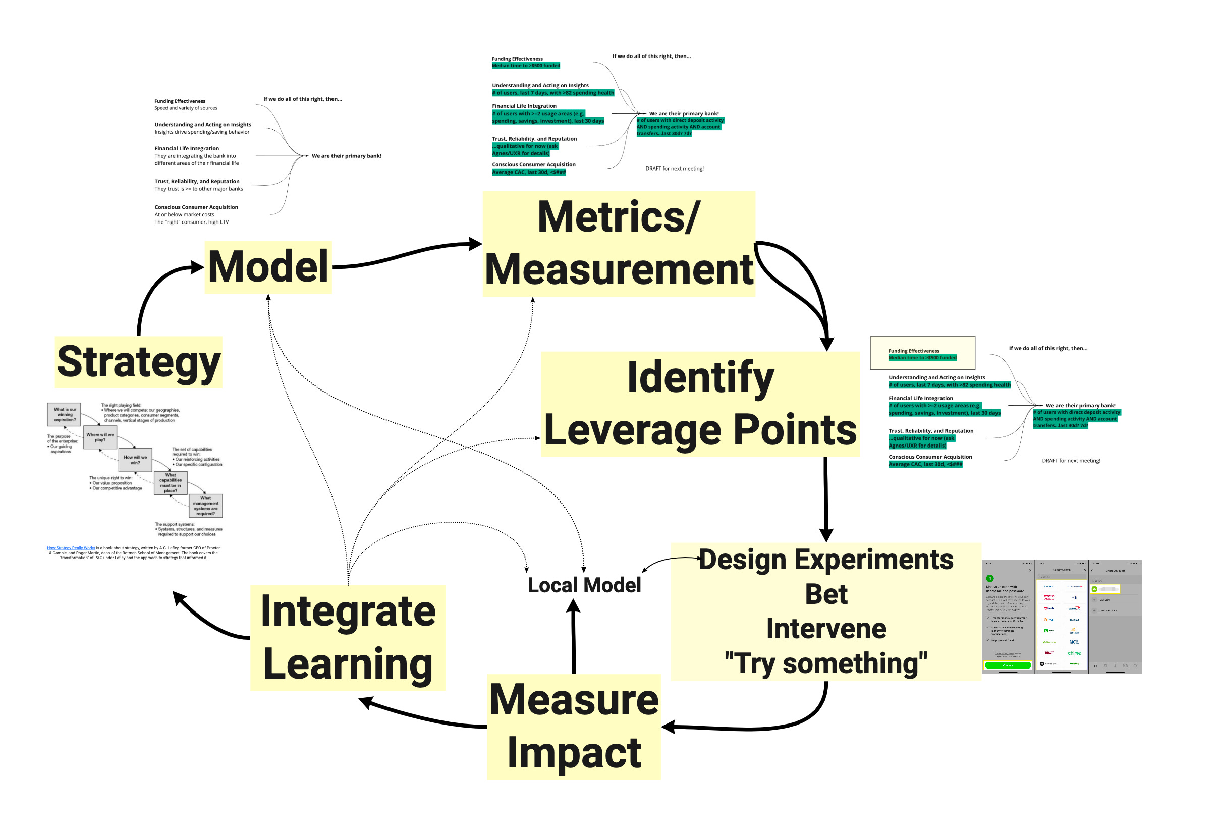 In the image below, goals would come after strategy—>model—>metrics/measurement when we identify high-level leverage points. This is consistent with the distinction between persistent models and point-in-time goals.