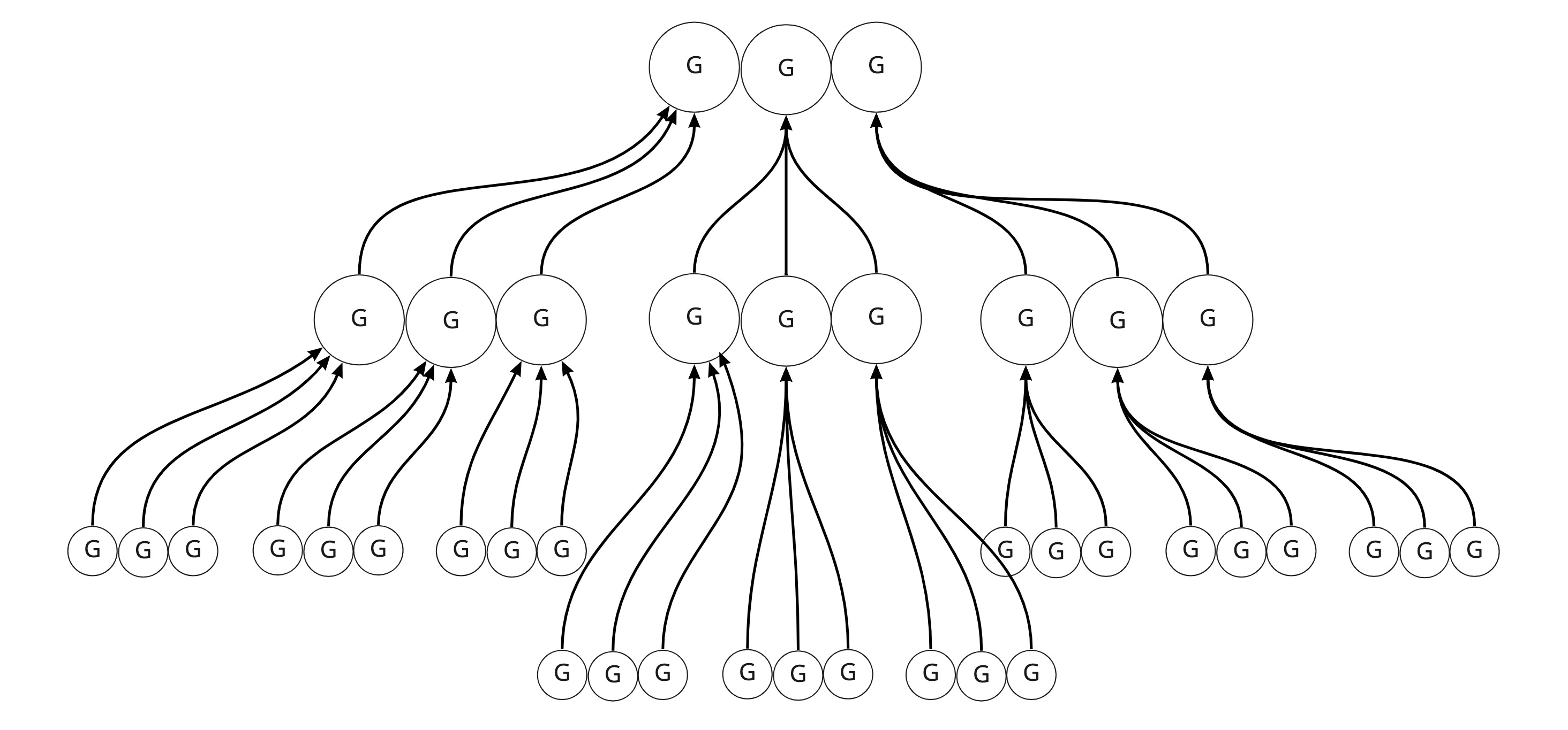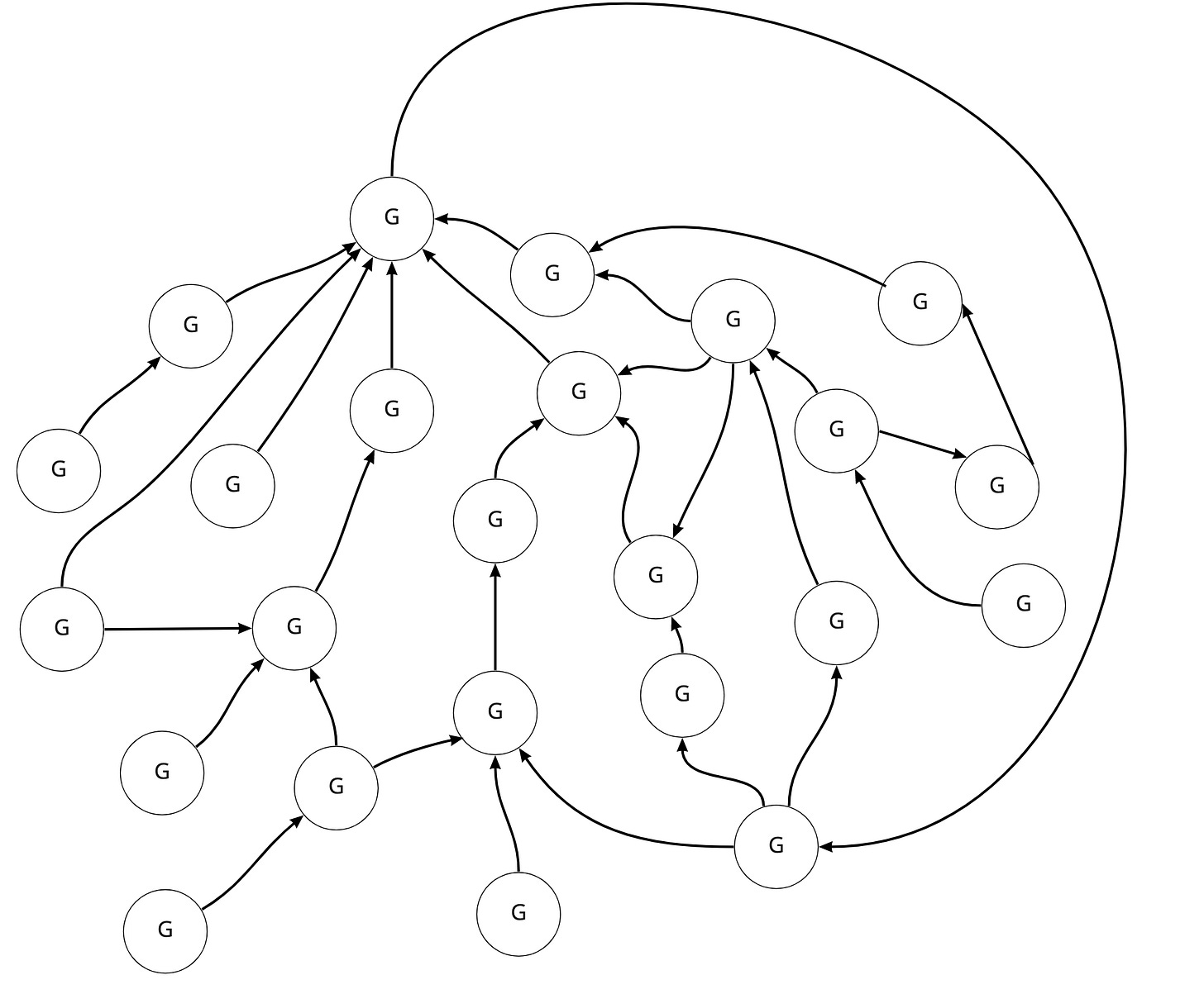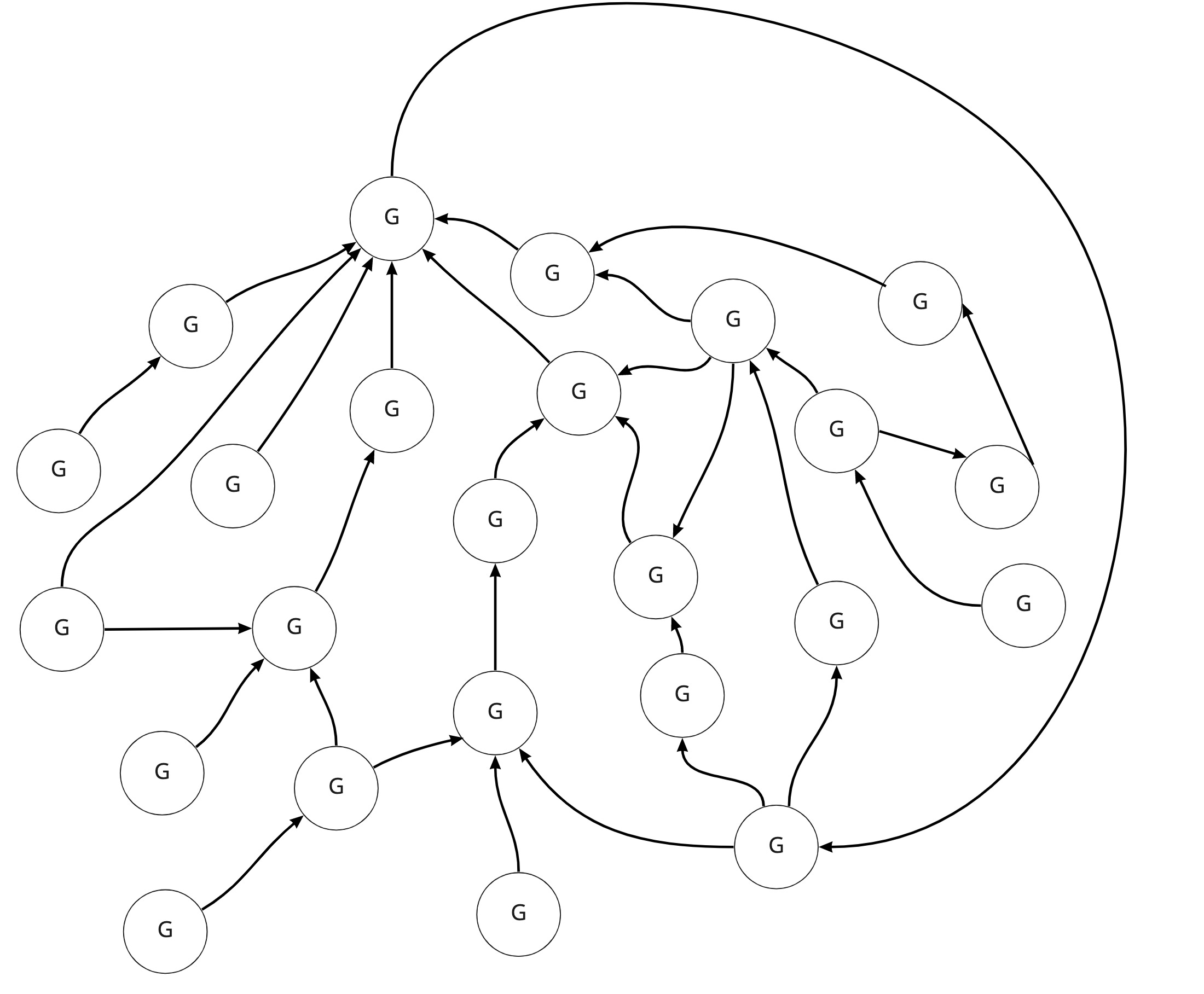 A company sets 24 ambitious goals for the year. They do not consider the org chart at all when creating the goals. The goals are completely department/team agnostic. The goals are solution-agnostic (e.g. increase _______). Some goals are related to other goals—leading/lagging, input/output, flywheels, etc. Those relationships are made explicit. Any hierarchy between goals is because of those relationships (not a goal cascade). Here’s a visual: