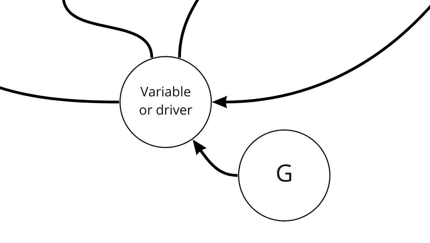 Minor detail that will come in handy later. A more accurate version of the above drawing would indicate that we set goals to move variables or drivers. If I had indicated that would have looked VERY chaotic.