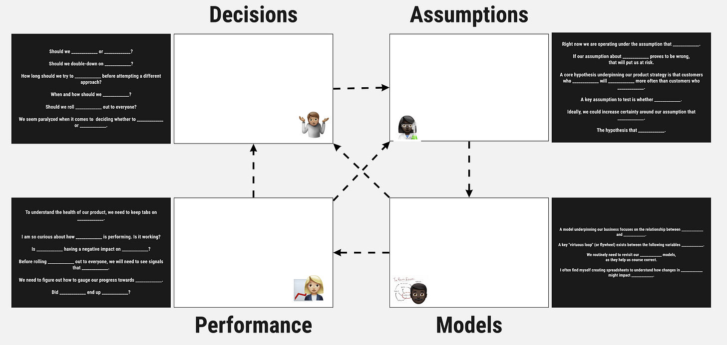 I started doing product management-like things in the early-2000s. I have always relied on various types of diagrams, trees, flywheels, and maps. Comparing notes, it seems like lots of product managers do this instinctively, and freestyle their own methods. Not sure why — maybe because the job is about context framing at different resolutions.